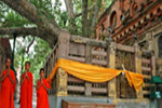 The present Bodhi Tree is probably the fifth succession of the original tree under which the Buddha had attained enlightenment. Vajrasana, the seat of stability, is a stone platform on which the Buddha is supposed to have sat in meditation gazing east, under the Bodhi tree. |