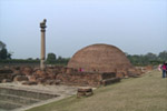 Emperor Ashoka built The Lion Pillar at Kolhua. It is made of a highly polished single piece of red sandstone, surmounted by a bell shaped capital, 18.3 m high. A life-size figure of a lion is placed on top of the pillar. There is a small tank here known as Ramkund. This pillar beside a brick stupa at Kolhua commemorates Buddha's last sermon. |