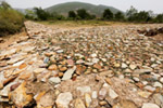 The Chariot Route and hell inscriptions are worth a visit for the strangeness of the phenomenon, two parallel furrows cut deep into rock for about thirty feet giving credence to the local belief that they were "burnt" into the rock by the speed and power of Lord Krishna's chariot when he entered the city of Rajgir during the epic Mahabharata times. Several shell inscriptions, the undeciphered characters current in central and eastern India from the 1st to 5th centuries AD, and engraved in the rock around the chariot marks. |