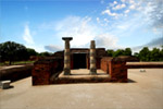 Opposite the entrance to the ruins of the university and houses, there is a small but beautiful collection of Buddhist and Hindu bronzes and a number of undamaged statues of the Lord Buddha that were found in the area. Two enormous terra-cotta jars of the first century stand intact behind the museum in a shaded enclosure. The collection includes copper plates and stone inscriptions, coins, pottery and samples of burnt rice (12th century AD) found among the ruins here. |